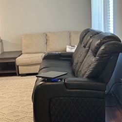 Black Leather Sectional Couch With Drop Down Table $750Seattle, WA