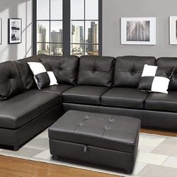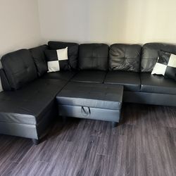 Black Faux Leather 3-Piece Couch Living Room Sofa Set including storage ottoman sectional sofa, brand new$630Seatac, WA