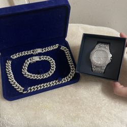 Iced Out Cuban Chain + Bracelet + Bling Watch Set (FULL SET!)$30Bellevue, WA