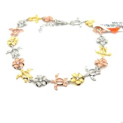 925 Sterling Silver Tri Color Turtle Bracelet 5.60grams 7” 153681 1$55Federal Way, WA