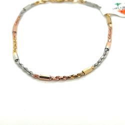 14kt Gold Tri Color Solid Rope Bar Bracelet 7” 2.1mm 3.30grams 153775 13$285Federal Way, WA