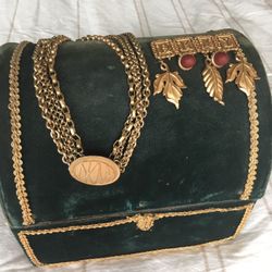 Sarah Coventry Old Vienna NECKLACE & BROOCH SET Brass & Enamel c1960$35Tacoma, WA