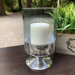 Candle, Candle Holder, Hurricane Round 5.25 Tall 9.25 Has Blue Tint$10Federal Way, WA