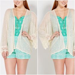Cream Crochet Sleeve Open Knit Wrap Cardigan$18Auburn, WA