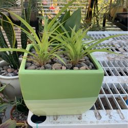 4 Baby Spider Plants In Green Ceramic Planter Pot$25Puyallup, WA