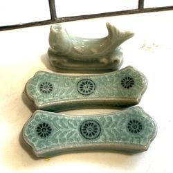 Beautiful Celedon Crackle Flower + Koi Fish Chopstick Rests - Set of 3$12Tacoma, WA