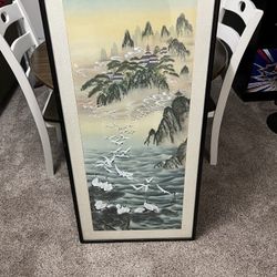 Large Vintage Asian Glass Framed Print with Brass Hanger$40Tacoma, WA