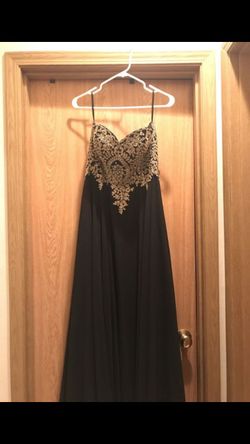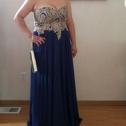 Strapless Navy blue gown with gold corsetted top$120Tacoma, WA