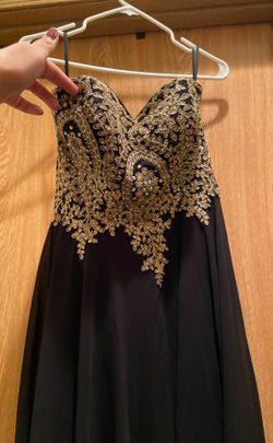 Strapless Navy blue gown with gold corsetted top$110Tacoma, WA