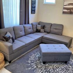 New Gray Linen Sectional Couch And Ottoman$700Renton, WA