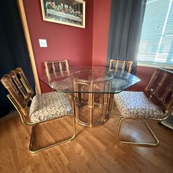 Vintage Boho Rattan glass dining room table and 4 chairs$500Renton, WA