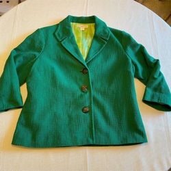 Cold water creek lined cotton blazer Kelly Green quarter length sleeve size 12$30Tacoma, WA