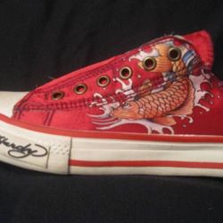 Vtg Y2K Ed Hardy Womens Size 6 Red KOI FISH Slip On Laceless SATIN Shoes$60Tacoma, WA