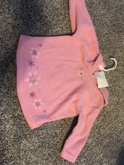 Pink fleece long sleeved shirt with a hoodie with snowflakes. Sized 12 months$10Bellevue, WA