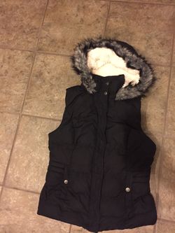 Black puffer fur lined vest women’s size medium$25University Place, WA