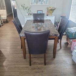 Round Stone Top Dining Table with Tapered Wooden Pedestal Base$69Seatac, WA