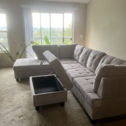 Grey Microfiber Sectional Couch And Ottoman$700Seattle, WA
