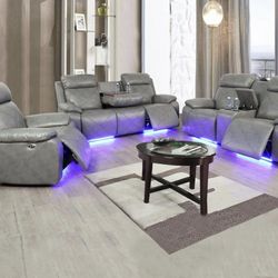 Power Electric Grey Leather Fully Reclining Three Piece Couch Set $2,000Federal Way, WA