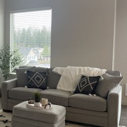 Grey Linen Sectional Couch And Ottoman $700Seattle, WA