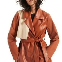 NWT Alfani Peanut Brittle Vegan Leather Trench Coat Size Petite M$40Federal Way, WA