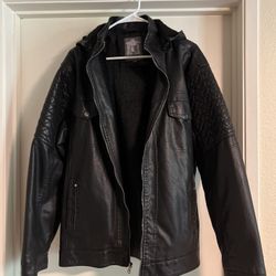 Blue Grandeur Black Faux Leather Jacket With Hood$12Spanaway, WA