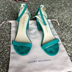 Stuart Weitzman Nearlynude Block Heel Sandals in Jade Luxe Suede$200Edgewood, WA