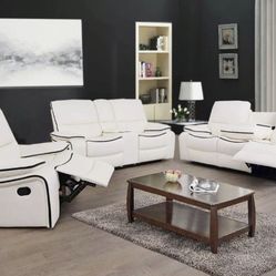 Brand New White Leather 3pc Reclining Set With Storage Compartments A Drop Down Table & Built In Cup Holders $1,500Puyallup, WA