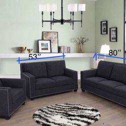 Brand New Charcoal Gray Linen Fabric Sofa Loveseat & Chair $850Spanaway, WA