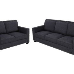 Brand New Charcoal Gray Linen Fabric Nail Studded Sofa & Loveseat $685Puyallup, WA