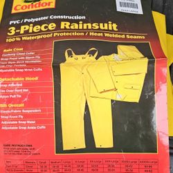 New Condor 3 PIECE RAINSUIT: Rain Coat Detachable Hood Overalls 1FBB5 XXXX-LARGE$20Puyallup, WA