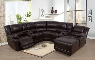 Brand New Brown Leather Reclining Sectional With Built In Cup Holders, Push Back Chaise & Storage Compartments$1,250Puyallup, WA