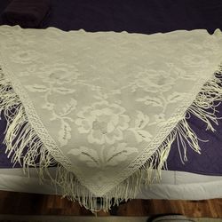 Antique rose pattern scarf/shawl cream lace with long fringe$25Tacoma, WA