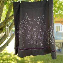 Axcess Liz Claiborne Vintage Y2K 90s Women’s Size 14 Brown A-Line Skirt - Lavender Embroidery, Beads, Silver Sparkle Thread, Velvet Trim$20Tacoma, WA