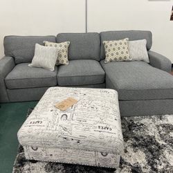 Brand New Gray Denim Linen Fabric Sectional With Storage Ottoman $715Puyallup, WA
