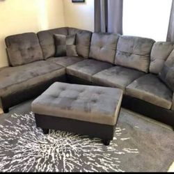 Brand New Charcoal Grey Microfiber Sectional With Storage Ottoman$625Spanaway, WA