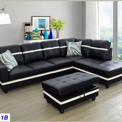 Brand New Black Leather Sectional With Storage Ottoman$625Renton, WA