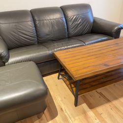 Black Leather Sectional Couch And Ottoman$700Renton, WA