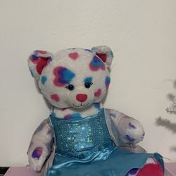 Build-A-Bear heart print teddy bear with blue dress$7Tacoma, WA