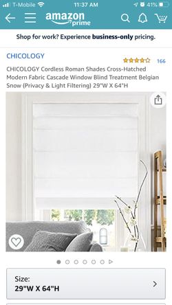 CHICOLOGY Cordless Roman Shades Cross-Hatched Modern Fabric Cascade Window Blind Treatment Belgian Snow (Privacy & Light Filtering) 29"W X 64"H$20Auburn, WA