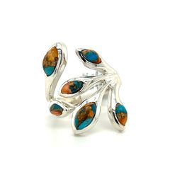 925 Sterling Silver Gemstone Unique Ring 6 Marquise Spiny Oyster Turquoise Stones 7.80grams 154020 1$95Federal Way, WA