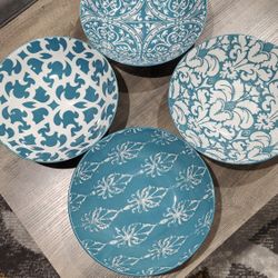 Geoff Tygret Turquoise & White Medallion Porcelain Low/Pasta Bowls (Set of 4) 9.25"$22Redmond, WA