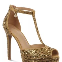 Thalia SODI 4" embellished Gold t Strap Heels$75Everett, WA