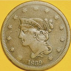 1839 U.S. CORONET HEAD LARGE CENT PENNY 1c COIN (VF-Very Fine)$90Issaquah, WA
