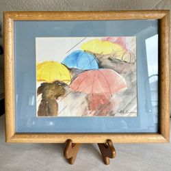 Vintage Custom Framed Rainy Umbrella Print Signed By Artist $60Lynnwood, WA