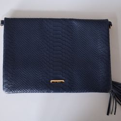 Gigi New York Clutch Crossbody Bag Navy Embossed Python Leather Gold Logo Tassel$35Mukilteo, WA