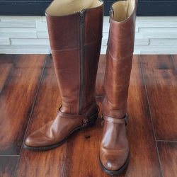 Frye Vintage Brown Leather Knee High Boots Side Zip Brass Harness Small Heel 5.5$98Mukilteo, WA