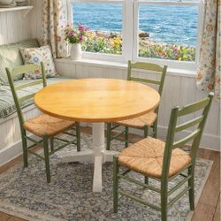 Charming Set Of 3 Shaker Style Ladder Back Reed Chairs & IKEA Bamboo Dining Or Round Oak Table Set or seperates$150Seattle, WA