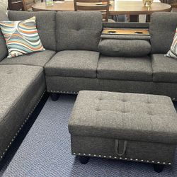 Sectional with Drop Cup Holder and Storageage Ottoman$799Marysville, WA
