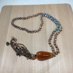 Vintage Faceted Glass Bead Carnelian Tassel Necklace$20Mukilteo, WA