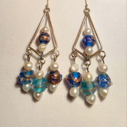 Sterling Silver, Glass And Seed Pearl Earrings$15Redmond, WA